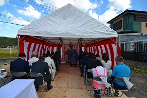 2018,10.30 スタッフブログ 快晴の中☆ こんにちはだいぶん涼しくなって来ましたね涼しく……日によっては少し寒いかな先日快適な日に地鎮祭が行われましたどんな天気でも…地鎮祭が無事に終わるとひとまずは、ホッとしますねホッとした後は…また気持ちを入れ直して竣工まで頑張りますよ 山田